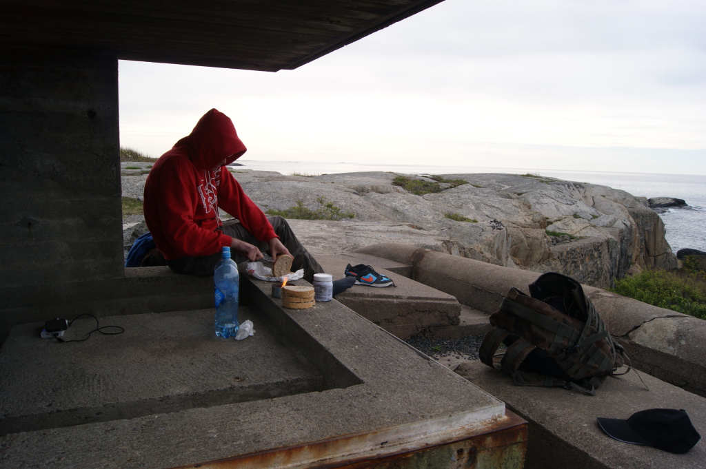 Śniadanie na fjordach w Norwegii po noclegu w bunkrze nieopodal :-)
